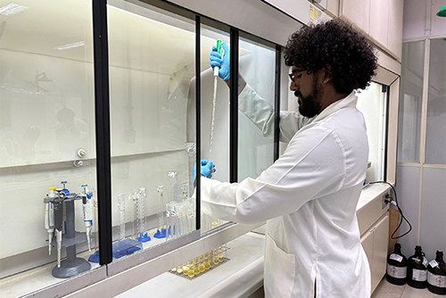 | Pesquisador do Laboratório de Mamíferos Aquáticos e Bioindicadores da Uerj verificando o nível de mercúrio no pescado. A contagem é feita por meio da análise de diferentes órgãos e tecidos dos peixes (Foto: Divulgação/ Maqua/Uerj) |