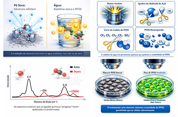Pesquisadores do Laboratório de Nanorradiofarmácia do Instituto de Engenharia Nuclear (IEN), localizado na Ilha do Fundão, acabam de publicar um trabalho científico inédito sobre os efeitos da irradiação com nêutrons para remediar um dos contaminantes ambientais mais persistentes e preocupantes da atualidade – o ácido perfluorooctanossulfônico (PFOS). Classificado entre os chamados "poluentes eternos" (do inglês, forever chemicals), ele é extremamente durável e resiste à degradação ambiental, podendo ser mais resistente do que o plástico, que leva anos para se degradar.