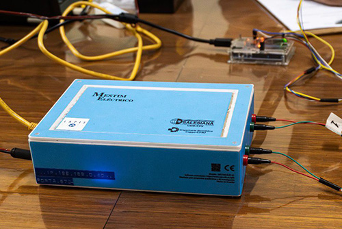 | Batizado de Mestim Eléctrico, o dispositivo permite configurar diferentes sequências de estimulação elétrica por meio de conexão Wi-Fi. Isso possibilita ajustar parâmetros como frequência, amplitude e largura de pulso de acordo com a necessidade de cada paciente (Foto: Cristina Cruz) |