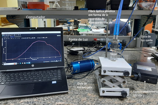 Werneck explica que a fibra óptica do sensor funciona de forma semelhante às usadas nas telecomunicações. “Porém, em vez de feixes de sílica, nós usamos fibras ópticas plásticas POF (da sigla em inglês, plastic optical fiber), que são mais baratas e mais fáceis de manipular”. Elas transmitem feixes de luz de uma extremidade à outra dentro do dispositivo e, qualquer alteração na superfície da fibra afeta a intensidade de luz recebida na outra extremidade do sensor, permitindo a detecção de alterações microscópicas, como a causada por bactérias.