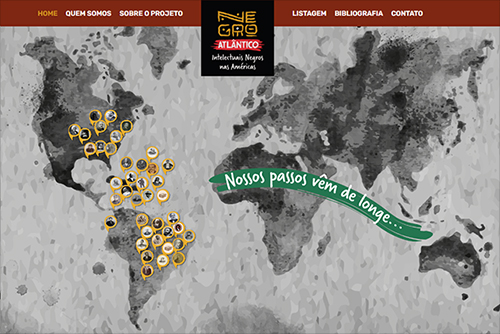 | No portal, em constante atualização, os intelectuais negros pesquisados são identificados por fotos, que ao serem clicadas abrem texto sobre o autor |