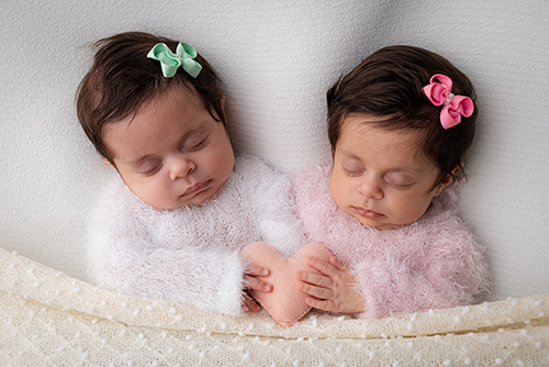 | As gêmeas Giovana e Beatriz, monozigóticas diamnióticas, nasceram prematuras, com 34 semanas de gestação |